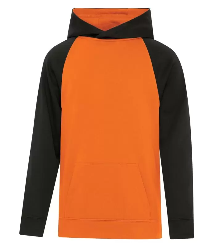 Chandail à capuchon performance, Type kangourou – Juvénile – Orange et noir